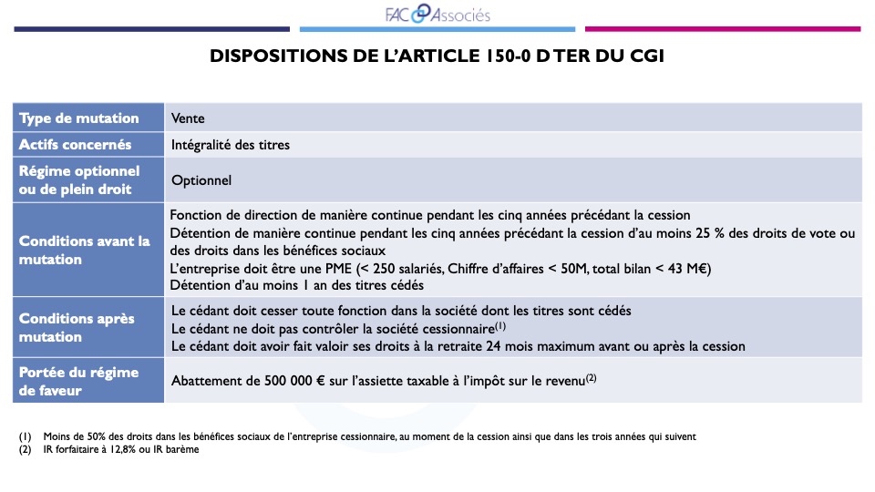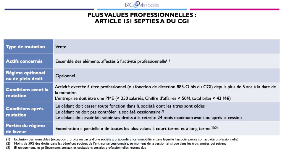 Vous trouverez un tableau synthétisant les mutations concernées par les dispositions de l’article 151 septies A du CGI, les conditions d’application avant et après mutation, ainsi que les modalités d’application de l’exonération qui en découlent (5 pages / dernière MàJ 01/02/2022)