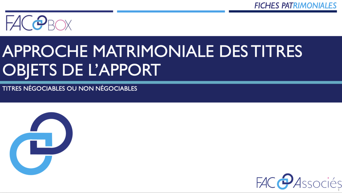 Mots clés : Communauté réduite aux acquêts – parts sociales – actions – distinction – titres négociables – titres non négociables – titre – finance