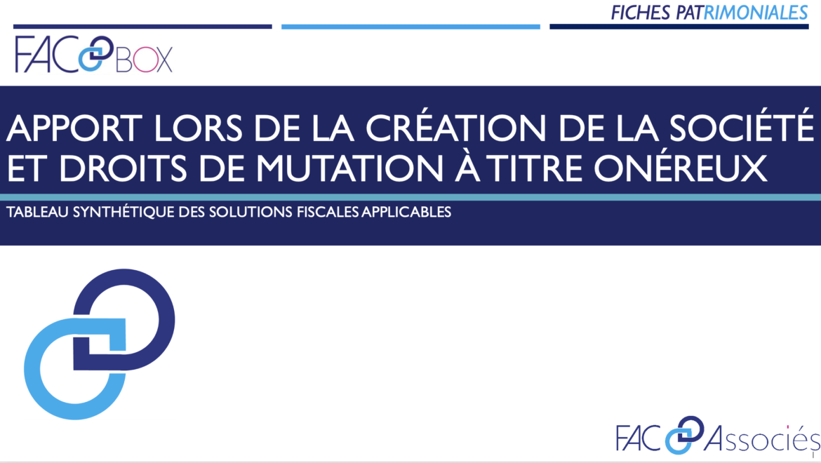 Fiche synthétique d’une page qui revient sur le changement de régime fiscal de la soulte à compter du 1er janvier 2017.