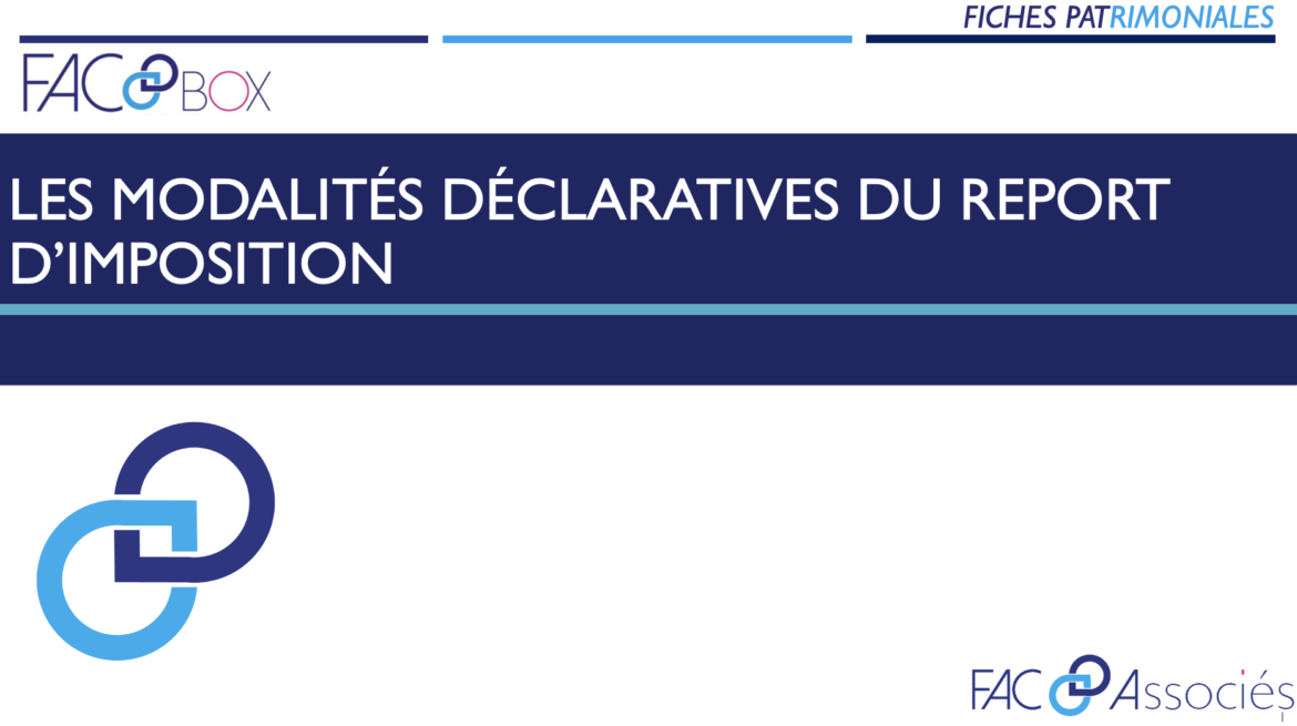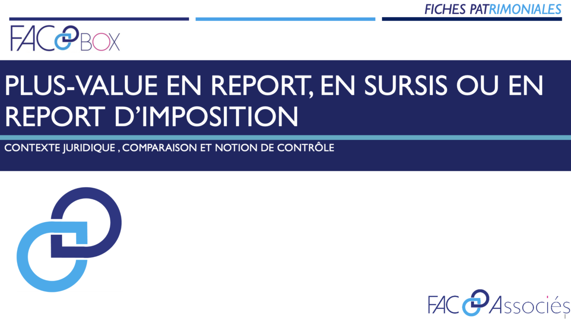 – la comparaison synthétique entre sursis, report et report d’imposition,