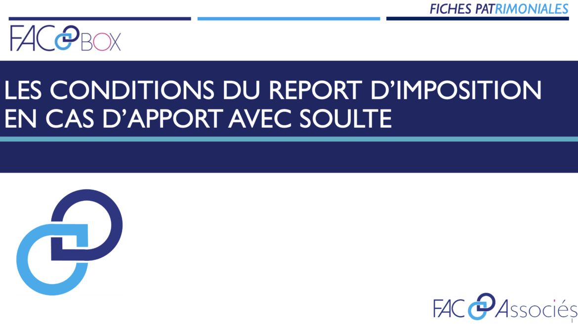 Mots clés : Apport avec soulte – valeur nominale des titres reçus – sursis – report d’imposition