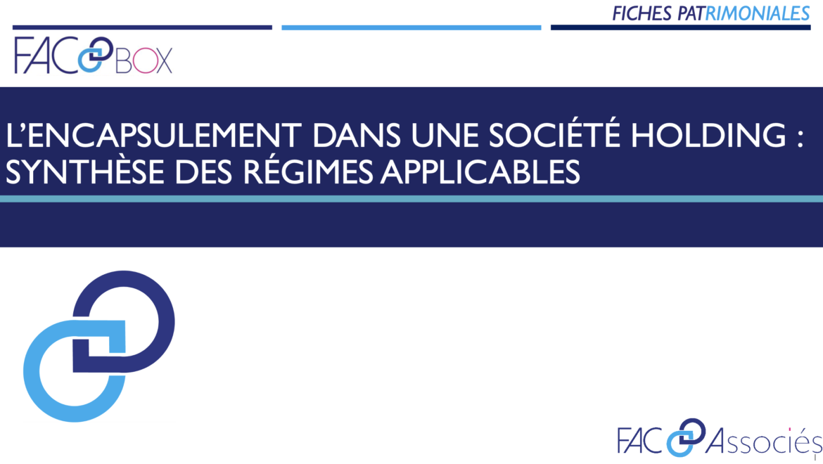 L’encapsulement dans une société holding : synthèse des régimes applicables